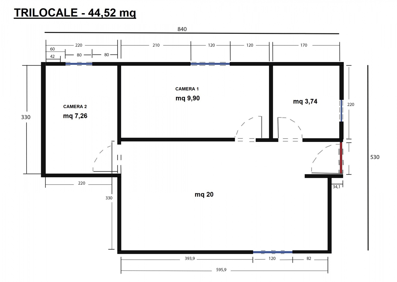 APPARTAMENTO TRILOCALE – 44,52 MQ