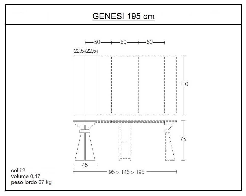 Genesi è la consolle di nuova generazione, il design esprime la sua forma scultorea esaltata dalla struttura portante in metallo che converge le sue linee in un nodo centrale, la sua perfetta simmetria si estende come in un abbraccio a sostegno del piano. Da consolle a tavolo da pranzo si trasforma sviluppando in tutta la sua estensione per ospitare 8/10 persone, l’impatto scenico è esclusivo e fortemente caratterizzante. Genesi, quando l’evoluzione della forma incide sullo spazio per creare valore o ospitalità. Genesi, nella sua massima estensione, si avvale di un sostegno centrale che assicura una solida base di appoggio senza compromettere il rigore estetico che caratterizza le forme e accompagna lo studio attento dei fattori legati all’ergonomia.