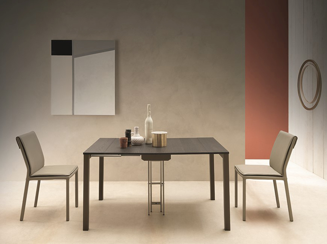 Consolle estensibile, struttura in metallo, meccanismo telescopico in alluminio, piano in legno nobilitato con 3 allunghe. Gambe centrali di supporto o porta allunghe opzionale. Il tavolo consolle Quad si può definire il più versatile salvaspazio in assoluto. Quad non è un tavolo ma una semplice consolle che possiamo posizionarla ovunque grazie alle sue dimensioni molto contenute 95 x 40 cm quando è chiusa. Grazie al suo robusto meccanismo telescopico in alluminio, con un piccolo gesto possiamo allungarla e posizionare le tre allunghe che ha in dotazione ottenendo così un bellissimo tavolo delle dimensioni 95 x 190 capace di offrirci ben 8/10 comodi posti a sedere. Quad è proprio quello che ci vuole per arredare un soggiorno o una sala da pranzo di piccole dimensioni, sfruttando due mobili in uno.