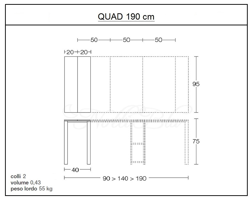 Tavolo Consolle Trasformabile - QUAD 190 cm