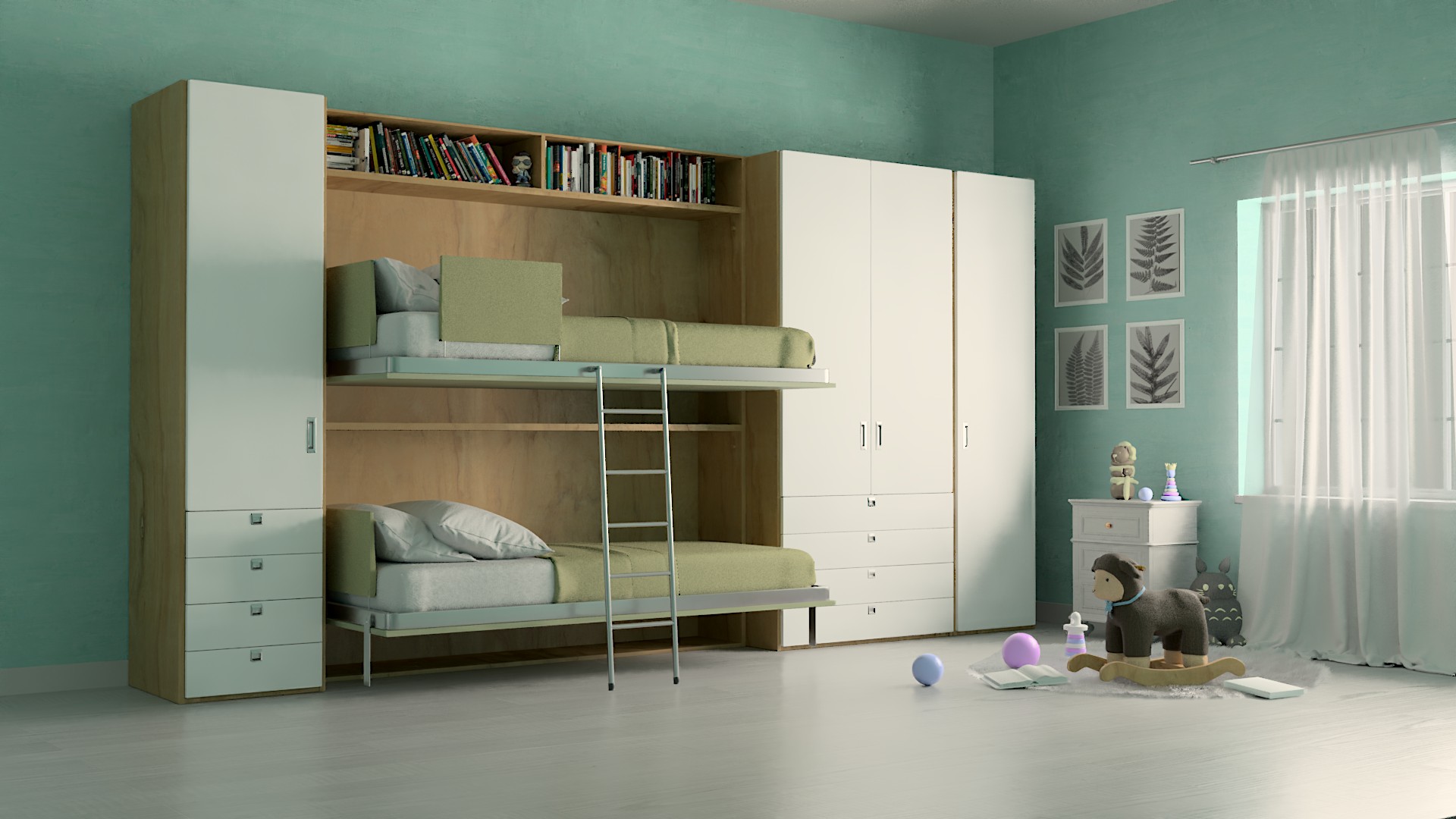 - Mobile letto a scomparsa salvaspazio maxi con 2 letti a castello con apertura orizzontale.