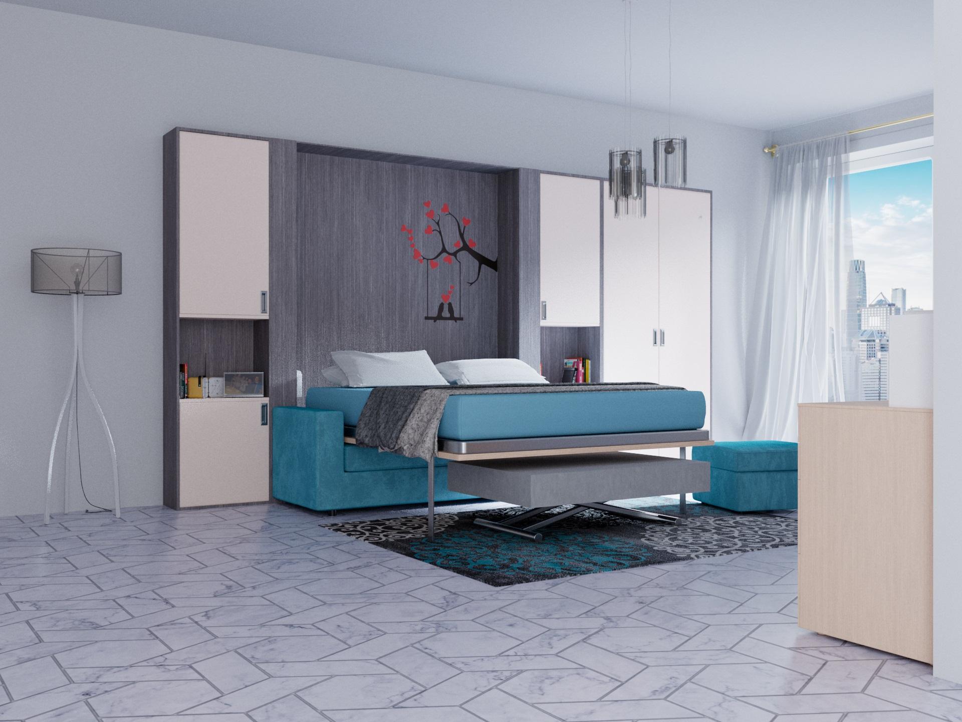 - Mobile letto a scomparsa salvaspazio maxi 2 piazze francese con apertura verticale.