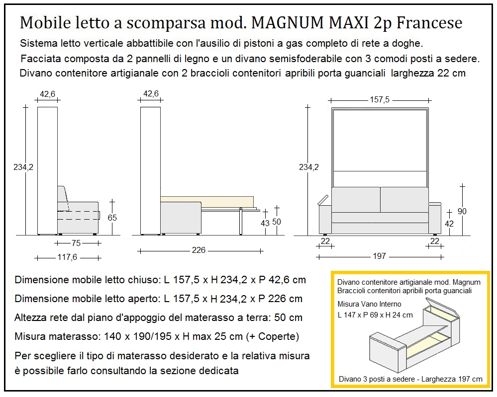 - Il mobile letto mod. Magnum Maxi 2 piazze francese viene prodotto 100% in Italia e distribuito in tutta Europa dalla Notti Blu.