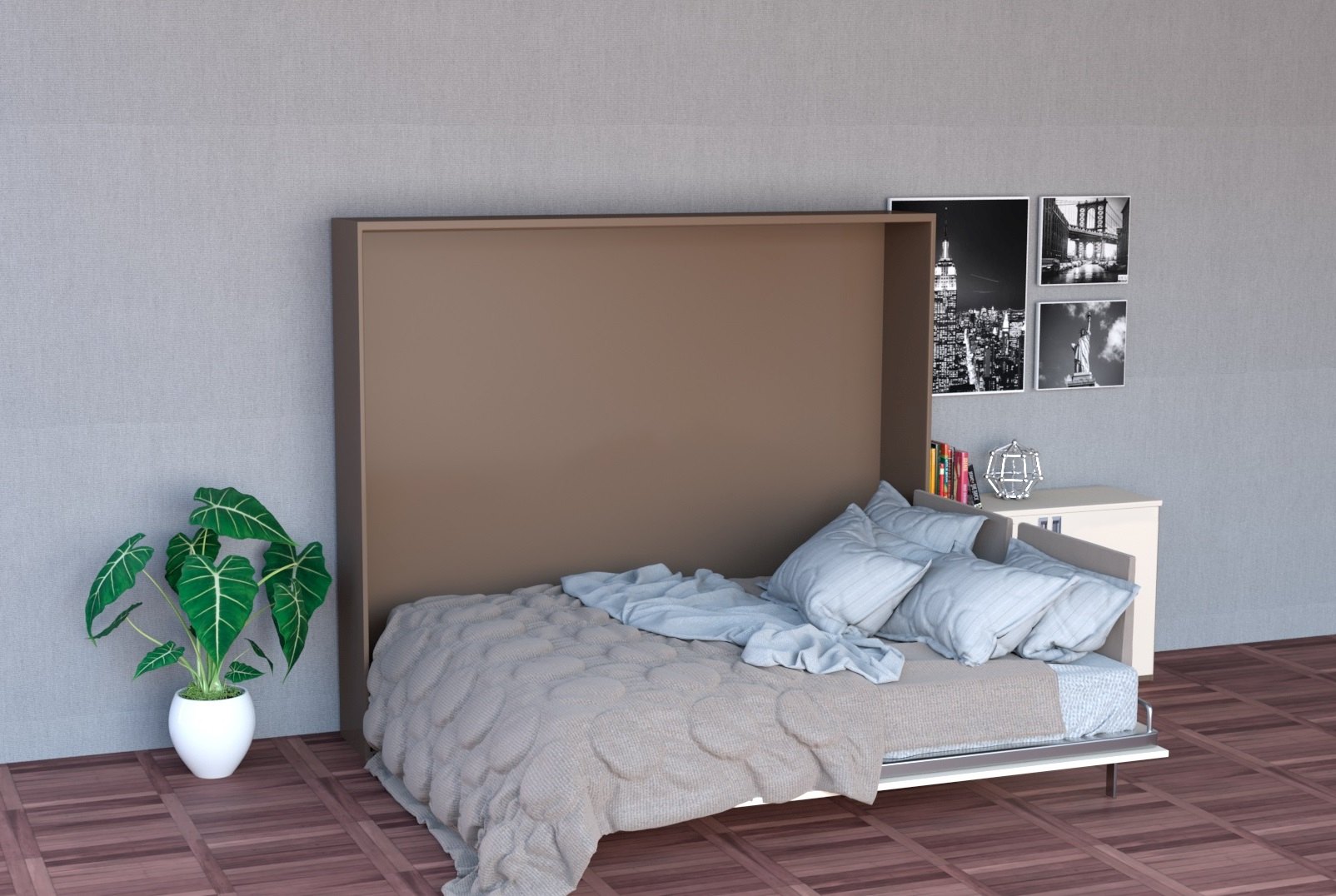 Modello Rudy Maxi 2 piazze francese 1. Mobile letto a scomparsa salvaspazio maxi 2 piazze francese con apertura orizzontale. 2. La facciata del mobile letto è composta da due pannelli di legno posti in orizzontale, davanti la facciata c’è un piano scrivania abbattibile L 165 x P 50 – spessore 2,2 cm. 3. La struttura del mobile viene realizzata in legno cippato classe E1, rivestito con una lamina di legno Materico, Nobilitato, oppure con una lamina colorata in Ecolac con effetto cera, disponibile in diverse varianti di colore. Questo tipo di legno oggi trova facile applicazione perchè è un prodotto robusto, affidabile ed è a garanzia dell’ambiente in quanto esente da vernici e solventi. 4. Il mobile letto a scomparsa mod. Rudy Maxi 2 piazze francese dispone di un programma di componibilità che comprende elementi strutturali di profondità maggiorata. Tale programma ci consente di realizzare pareti attrezzate di dimensioni e forma idonee a soddisfare ogni nostra esigenza di spazio di cui: colonne libreria, colonne armadio, sopralzi, ecc. 5. Il mobile letto mod. Rudy Maxi 2 piazze francese viene prodotto 100% in Italia e distribuito in tutta Europa dalla Notti Blu. 6. Le dimensioni del mobile letto chiuso sono: L 214,5 x P 42,6 x H 162,3 cm. 7. Le dimensioni del mobile letto aperto sono: L 214,5 x P 171 x H 162,3 cm. 8. Le dimensioni della rete sono: L 150 x 205 cm. 9. La struttura della rete è costituita da un telaio di ferro verniciata al forno con polveri epossidiche atossiche come da normativa di legge. La base d’appoggio del materasso è a doghe di faggio stagionato con rinforzi al centro delle due piazze per consentirne l’uso unitamente a un materasso adeguato anche a persone che pesano oltre 120 kg, le cosidette “TAGLIE FORTI”. 10. Il movimento del letto è dato da uno speciale sistema d’apertura e chiusura servoassistito da pistoni a gas che garantisce estrema sicurezza ed elevata affidabilità. Quando il letto viene aperto il suo movimento è a “LENTO RILASCIO” vale a dire che si apre molto lentamente fino a raggiungere la posizione orizzontale di un normale letto. Quando invece dobbiamo chiuderlo è sufficiente la forza di un bambino per fare si che esso si solleva e si va a posizionare dentro il mobile letto e scompare. 11. La rete è corredata di cinghie elastiche ferma materasso necessarie a mantenere in ordine il riassetto quotidiano del letto anche quando questo viene chiuso, in questo modo possiamo disporre di un letto sempre pronto per andare a dormire. 12. Le dimensione del materasso sono L 140 x 195 x H max 25 cm + coperte. (Optional) 13. Per la scelta del materasso consultare la guida: MATERASSI CONSIGLIATI 14. A questo mobile letto a scomparsa è possibile inserire due plafoniere con luci led molto utili soprattutto per chi ha la necessità di alzarsi dal letto durante la notte (Optional). 15. Viene fornito completamente smontato per essere trasportato in qualsiasi luogo (mansarde, piani alti, seminterrati, ecc.). 16. E’ obbligatorio il fissaggio al muro. 17. Garanzia: La ditta Notti Blu garantisce questo prodotto per 2 anni. 18. Gli elementi: Libreria, Armadiature, Sopralzi, Accessori, Materasso, Testata reclinabile, Luci Led, ecc. sono “Optional” 19. Il prezzo si riferisce al solo mobile letto a scomparsa, sono esclusi tutti gli elementi opzionali. 20. Dove è previsto vengono indicate anche le misure e il prezzo dell’intera composizione.