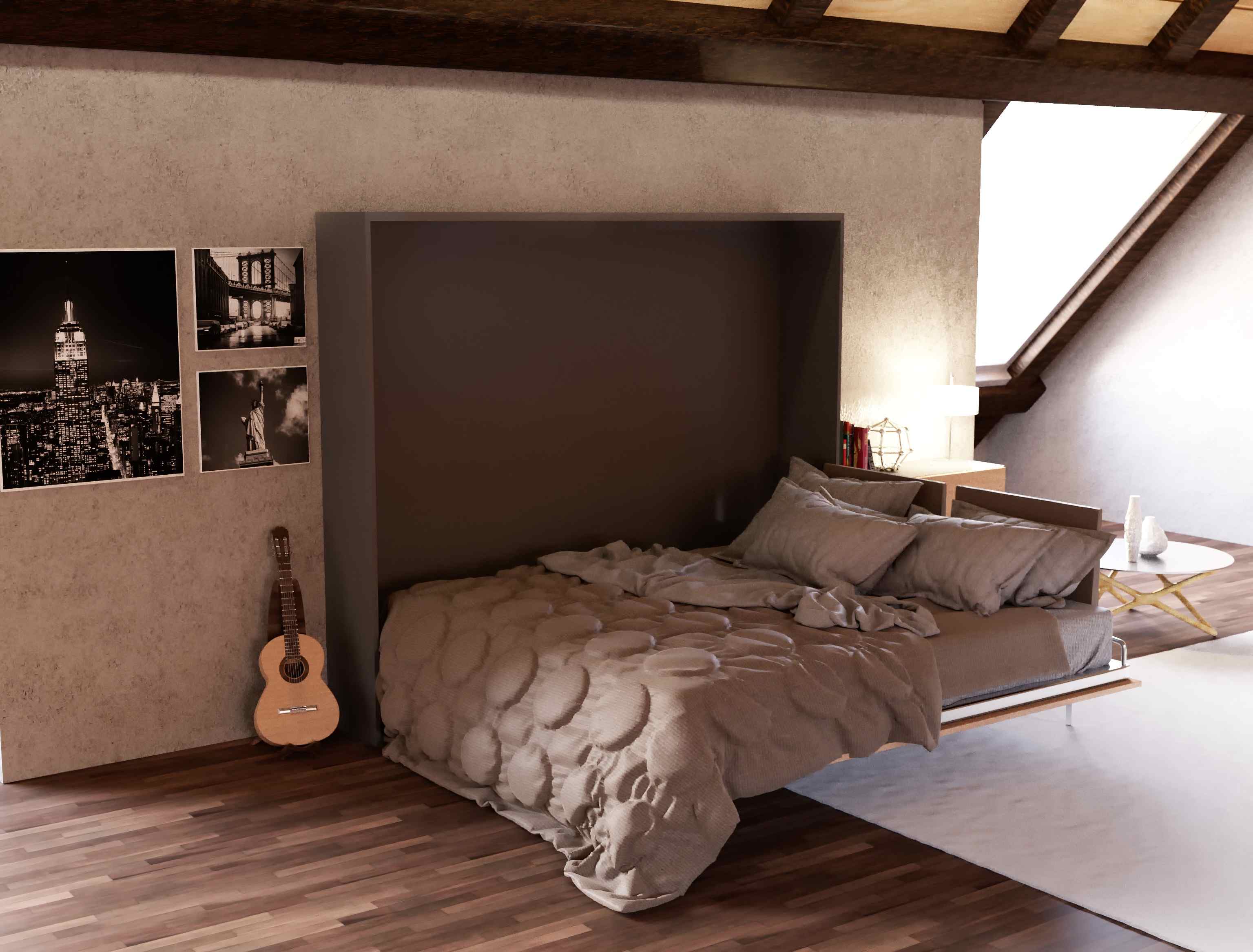 Modello Ugo Maxi 2 piazze francese 1. Mobile letto a scomparsa salvaspazio maxi 2 piazze francese con apertura orizzontale. 2. La facciata del mobile letto è composta da due pannelli di legno posti in orizzontale. 3. La struttura del mobile viene realizzata in legno cippato classe E1, rivestito con una lamina di legno Materico, Nobilitato, oppure con una lamina colorata in Ecolac con effetto cera, disponibile in diverse varianti di colore. Questo tipo di legno oggi trova facile applicazione perchè è un prodotto robusto, affidabile ed è a garanzia dell’ambiente in quanto esente da vernici e solventi. 4. Il mobile letto a scomparsa mod. Ugo Maxi 2 piazze francese dispone di un programma di componibilità che comprende elementi strutturali di profondità maggiorata. Tale programma ci consente di realizzare pareti attrezzate di dimensioni e forma idonee a soddisfare ogni nostra esigenza di spazio di cui: colonne libreria, colonne armadio, sopralzi, ecc. 5. Il mobile letto mod. Ugo Maxi 2 piazze francese viene prodotto 100% in Italia e distribuito in tutta Europa dalla Notti Blu. 6. Le dimensioni del mobile letto chiuso sono: L 214,5 x P 42,6 x H 162,3 cm. 7. Le dimensioni del mobile letto aperto sono: L 214,5 x P 191 x H 162,3 cm. 8. Le dimensioni della rete sono: L 150 x 205 cm. 9. La struttura della rete è costituita da un telaio di ferro verniciata al forno con polveri epossidiche atossiche come da normativa di legge. La base d’appoggio del materasso è a doghe di faggio stagionato con rinforzi al centro delle due piazze per consentirne l’uso unitamente a un materasso adeguato anche a persone che pesano oltre 120 kg, le cosidette “TAGLIE FORTI”. 10. Il movimento del letto è dato da uno speciale sistema d’apertura e chiusura servoassistito da pistoni a gas che garantisce estrema sicurezza ed elevata affidabilità. Quando il letto viene aperto il suo movimento è a “LENTO RILASCIO” vale a dire che si apre molto lentamente fino a raggiungere la posizione orizzontale di un normale letto. Quando invece dobbiamo chiuderlo è sufficiente la forza di un bambino per fare si che esso si solleva e si va a posizionare dentro il mobile letto e scompare. 11. La rete è corredata di cinghie elastiche ferma materasso necessarie a mantenere in ordine il riassetto quotidiano del letto anche quando questo viene chiuso, in questo modo possiamo disporre di un letto sempre pronto per andare a dormire. 12. Le dimensione del materasso sono L 140 x 195 x H max 25 cm + coperte. (Optional) 13. Per la scelta del materasso consultare la guida: MATERASSI CONSIGLIATI 14. A questo mobile letto a scomparsa è possibile inserire due plafoniere con luci led molto utili soprattutto per chi ha la necessità di alzarsi dal letto durante la notte (Optional). 15. Viene fornito completamente smontato per essere trasportato in qualsiasi luogo (mansarde, piani alti, seminterrati, ecc.). 16. E’ obbligatorio il fissaggio al muro. 17. Garanzia: La ditta Notti Blu garantisce questo prodotto per 2 anni. 18. Gli elementi: Libreria, Armadiature, Sopralzi, Accessori, Materasso, Testata reclinabile, Luci Led, ecc. sono “Optional” 19. Il prezzo si riferisce al solo mobile letto a scomparsa, sono esclusi tutti gli elementi opzionali. 20. Dove è previsto vengono indicate anche le misure e il prezzo dell’intera composizione.