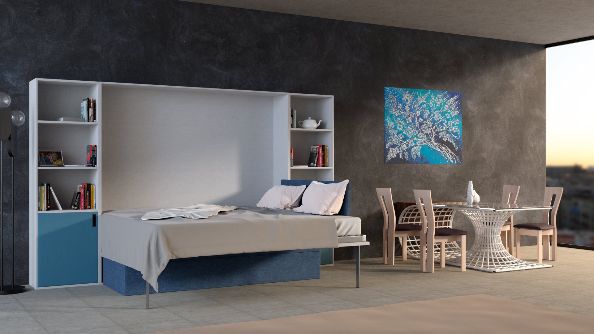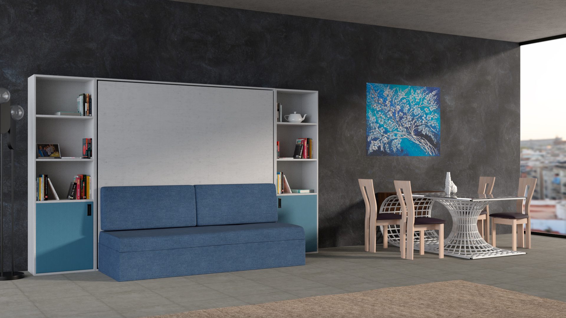 Modello Dolly Orizzontale Maxi 2 piazze 1. Mobile letto a scomparsa salvaspazio maxi 2 piazze con apertura orizzontale. 2. La facciata del mobile letto è composta da due pannelli di legno posti in orizzontale, davanti c’è un divano contenitore con quattro comodi posti a sedere completamente sfoderabile. All’occorenza questo divano si può trasformare anche in un terzo posto letto per una persona. Il divano dispone di tre tipi di rivestimenti: Ecopelle, Microfibra e Cotone, ognuno di questi rivestimenti è disponibile in diverse varianti di colore. 3. La struttura del mobile viene realizzata in legno cippato classe E1, rivestito con una lamina di legno Materico, Nobilitato, oppure con una lamina colorata in Ecolac con effetto cera, disponibile in diverse varianti di colore. Questo tipo di legno oggi trova facile applicazione perchè è un prodotto robusto, affidabile ed è a garanzia dell’ambiente in quanto esente da vernici e solventi. 4. Il mobile letto a scomparsa mod. Dolly Orizzontale Maxi 2 piazze dispone di un programma di componibilità che comprende elementi strutturali di profondità maggiorata. Tale programma ci consente di realizzare pareti attrezzate di dimensioni e forma idonee a soddisfare ogni nostra esigenza di spazio di cui: colonne libreria, colonne armadio, sopralzi, ecc. 5. Il mobile letto mod. Dolly Orizzontale Maxi 2 piazze viene prodotto 100% in Italia e distribuito in tutta Europa dalla Notti Blu. 6. Le dimensioni del mobile letto chiuso sono: L 214,5 x P 42,6 x H 182,3 cm. 7. Le dimensioni del mobile letto aperto sono: L 214,5 x P 191 x H 182,3 cm. 8. Le dimensioni della rete sono: L 170 x 205 cm. 9. La struttura della rete è costituita da un telaio di ferro verniciata al forno con polveri epossidiche atossiche come da normativa di legge. La base d’appoggio del materasso è a doghe di faggio stagionato con rinforzi al centro delle due piazze per consentirne l’uso unitamente a un materasso adeguato anche a persone che pesano oltre 120 kg, le cosidette “TAGLIE FORTI”. 10. Il movimento del letto è dato da uno speciale sistema d’apertura e chiusura servoassistito da pistoni a gas che garantisce estrema sicurezza ed elevata affidabilità. Quando il letto viene aperto il suo movimento è a “LENTO RILASCIO” vale a dire che si apre molto lentamente fino a raggiungere la posizione orizzontale di un normale letto. Quando invece dobbiamo chiuderlo è sufficiente la forza di un bambino per fare si che esso si solleva e si va a posizionare dentro il mobile letto e scompare. 11. La rete è corredata di cinghie elastiche ferma materasso necessarie a mantenere in ordine il riassetto quotidiano del letto anche quando questo viene chiuso, in questo modo possiamo disporre di un letto sempre pronto per andare a dormire. 12. Le dimensione del materasso sono L 160 x 195 x H max 25 cm + coperte. (Optional) 13. Per la scelta del materasso consultare la guida: MATERASSI CONSIGLIATI 14. A questo mobile letto a scomparsa è possibile inserire due plafoniere con luci led molto utili soprattutto per chi ha la necessità di alzarsi dal letto durante la notte (Optional). 15. Viene fornito completamente smontato per essere trasportato in qualsiasi luogo (mansarde, piani alti, seminterrati, ecc.). 16. E’ obbligatorio il fissaggio al muro. 17. Garanzia: La ditta Notti Blu garantisce questo prodotto per 2 anni. 18. Gli elementi: Libreria, Armadiature, Sopralzi, Accessori, Luci Led, ecc. sono “Optional”. 19. Il prezzo si riferisce al solo mobile letto a scomparsa, sono esclusi tutti gli elementi opzionali. 20. Dove è previsto vengono indicate anche le misure e il prezzo dell’intera composizione.
