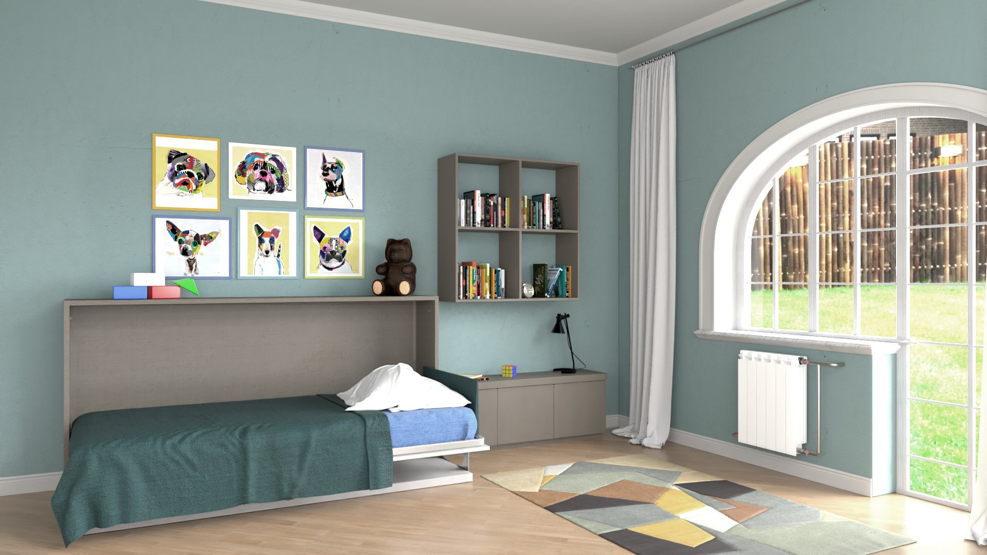 - Il movimento del letto è dato da uno speciale sistema d’apertura e chiusura servoassistito da pistoni a gas che garantisce estrema sicurezza ed elevata affidabilità. Quando il letto viene aperto il suo movimento è a “LENTO RILASCIO” vale a dire che si apre molto lentamente fino a raggiungere la posizione orizzontale di un normale letto. Quando invece dobbiamo chiuderlo è sufficiente la forza di un bambino per fare si che esso si solleva e si va a posizionare dentro il mobile letto e scompare.