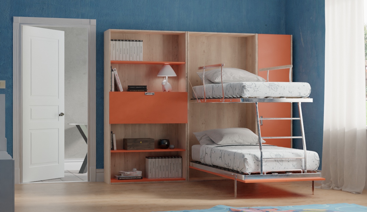 - Mobile letto a scomparsa salvaspazio con 2 letti a castello con apertura verticale.