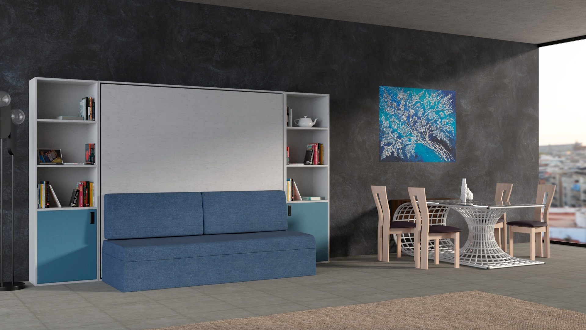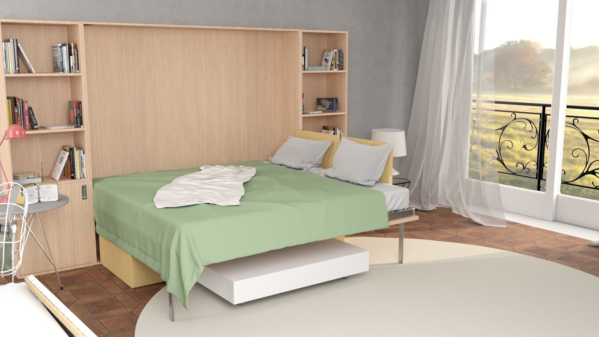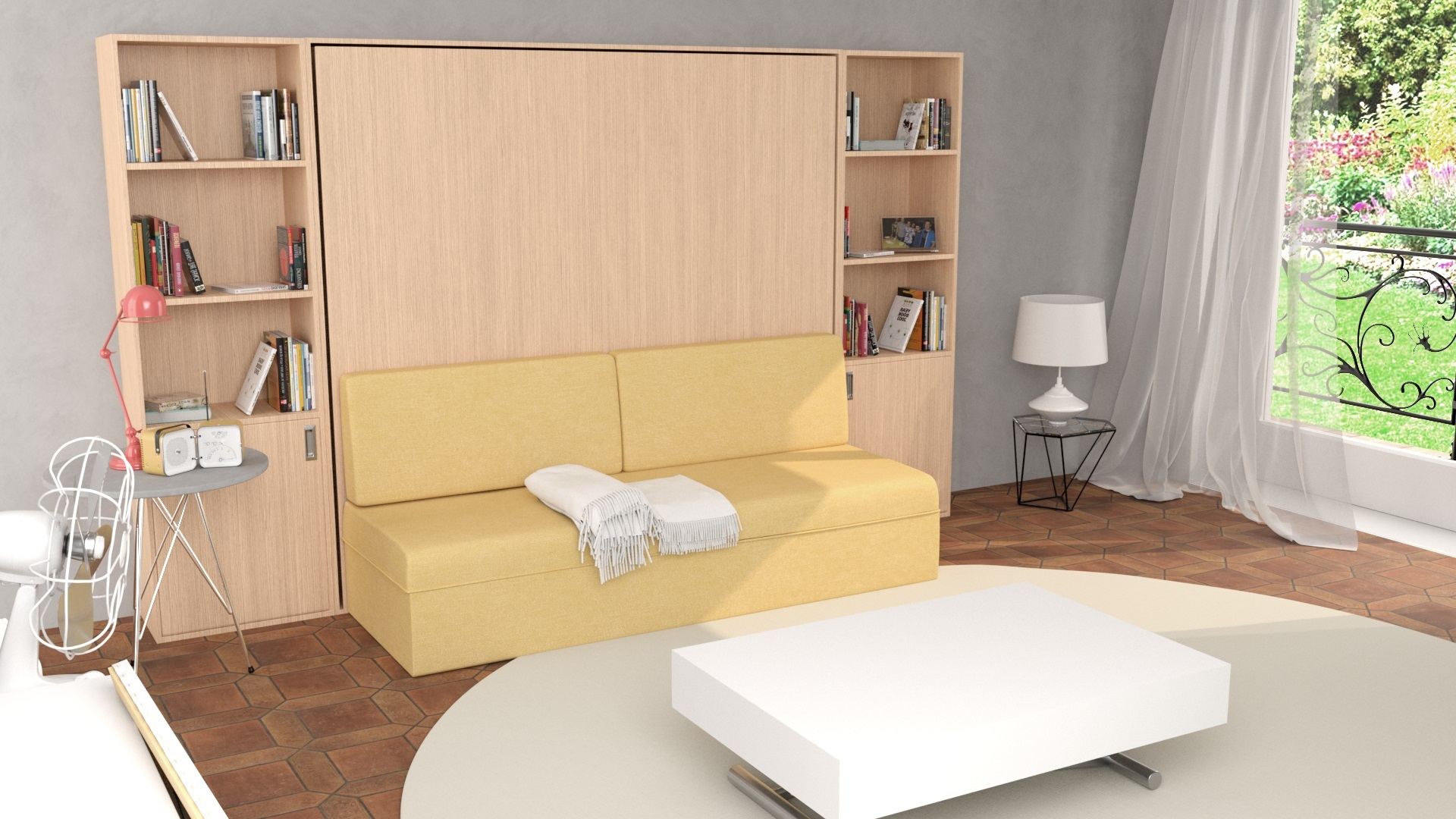 - Mobile letto a scomparsa salvaspazio 2 piazze francese con apertura orizzontale.