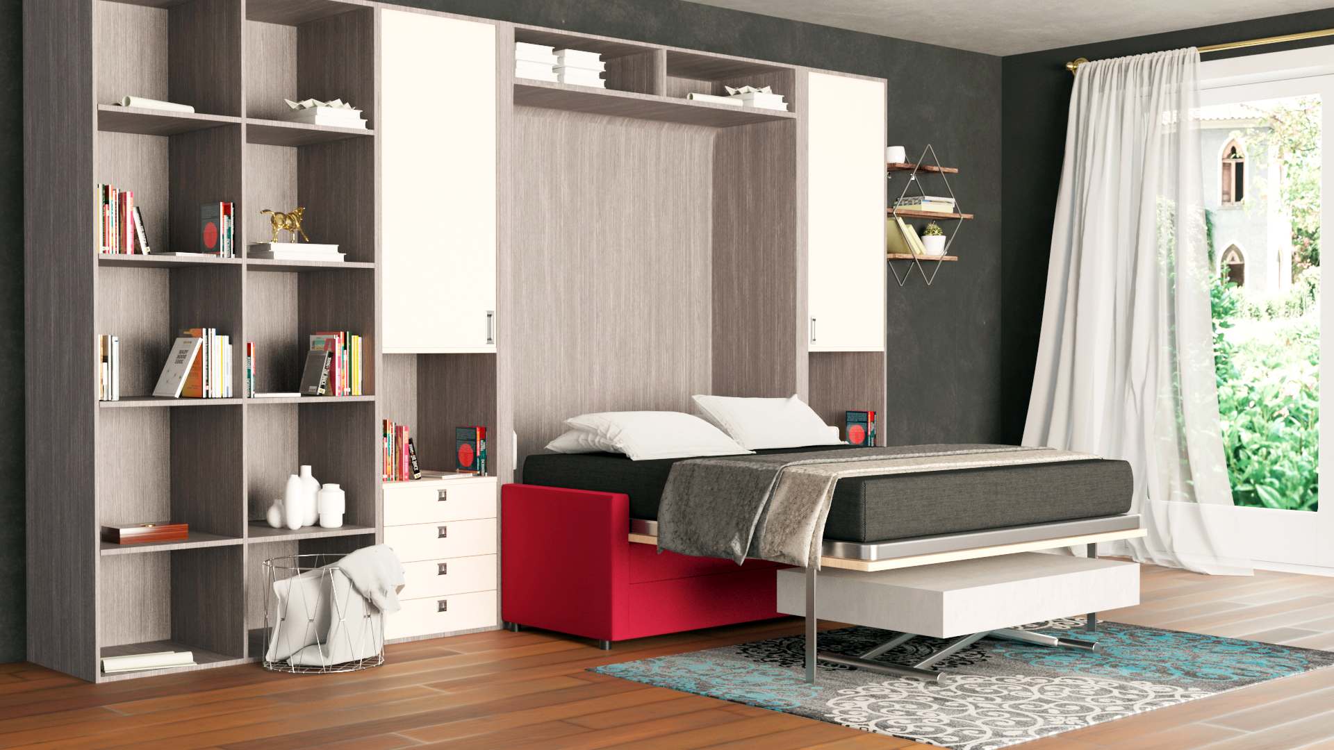 - Mobile letto a scomparsa salvaspazio due piazze con apertura verticale.
