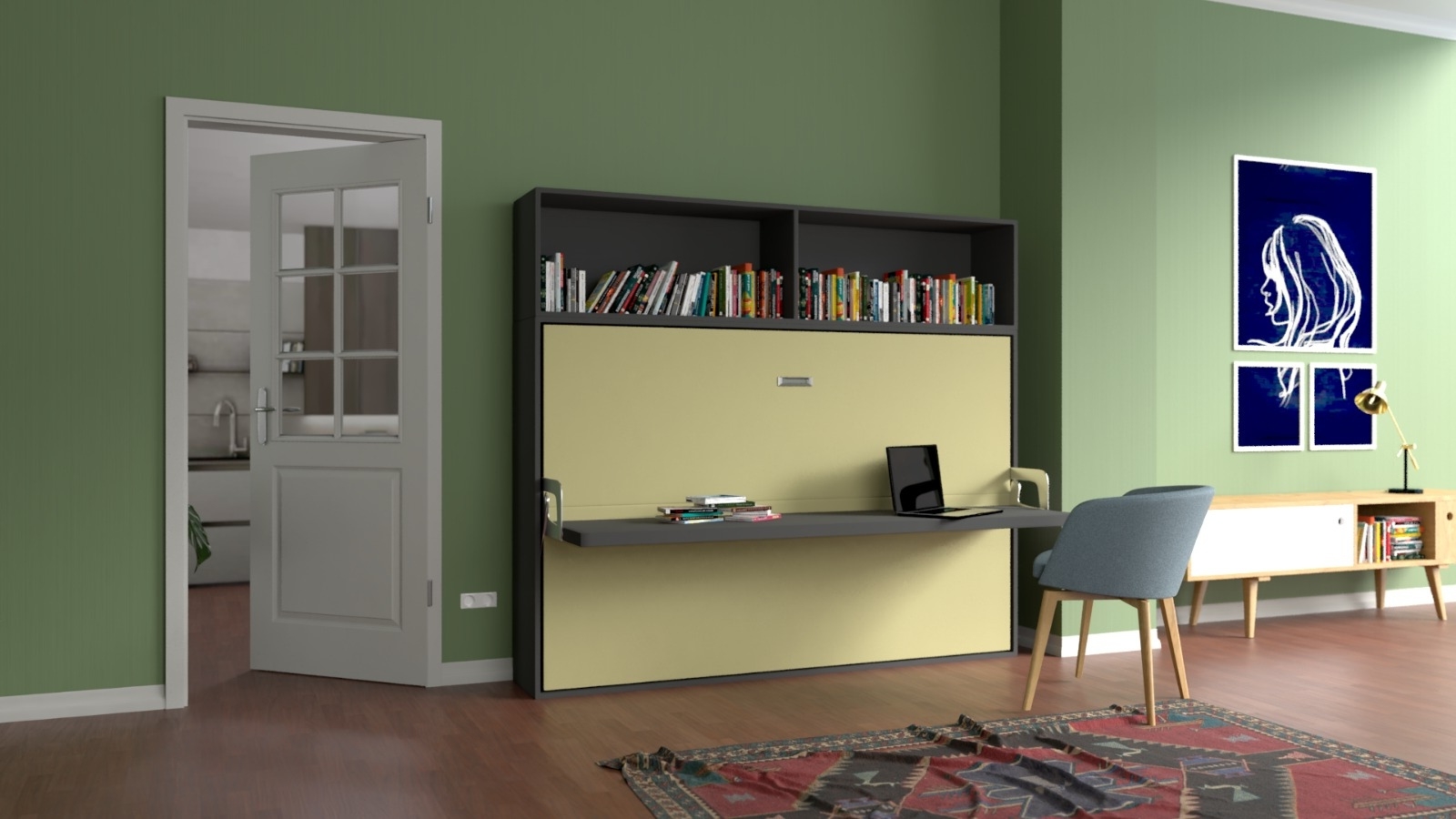 - Il mobile letto a scomparsa mod. Desk 1 piazza e 1/2 – Composizione A dispone di un programma di componibilità che comprende elementi strutturali profondi 36,2 cm. Tale programma ci consente di realizzare pareti attrezzate di dimensioni e forma idonee a soddisfare ogni nostra esigenza di spazio di cui: colonne libreria, colonne armadio, sopralzi, ecc.