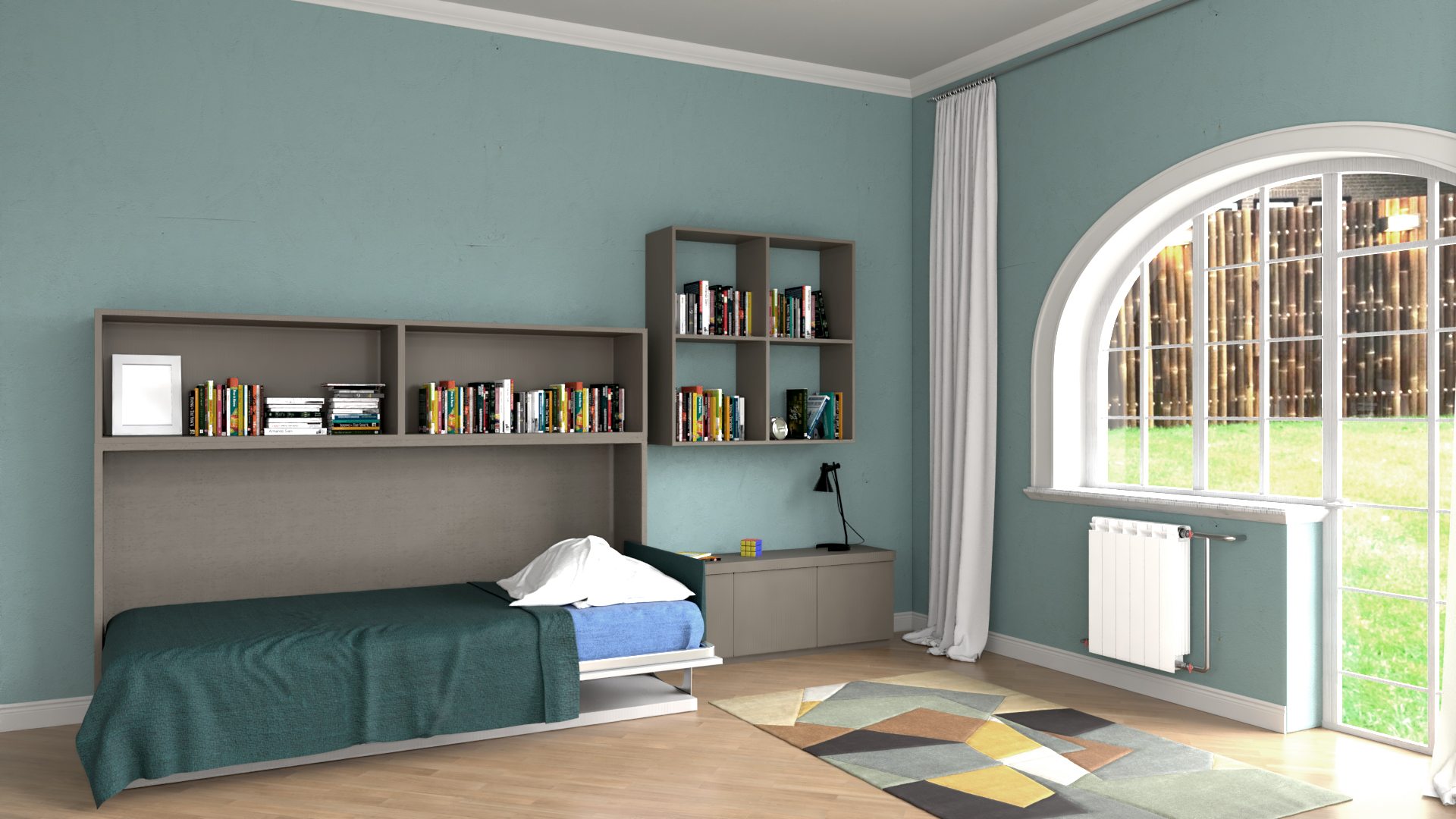 - Mobile letto a scomparsa salvaspazio 1 piazza con apertura orizzontale.