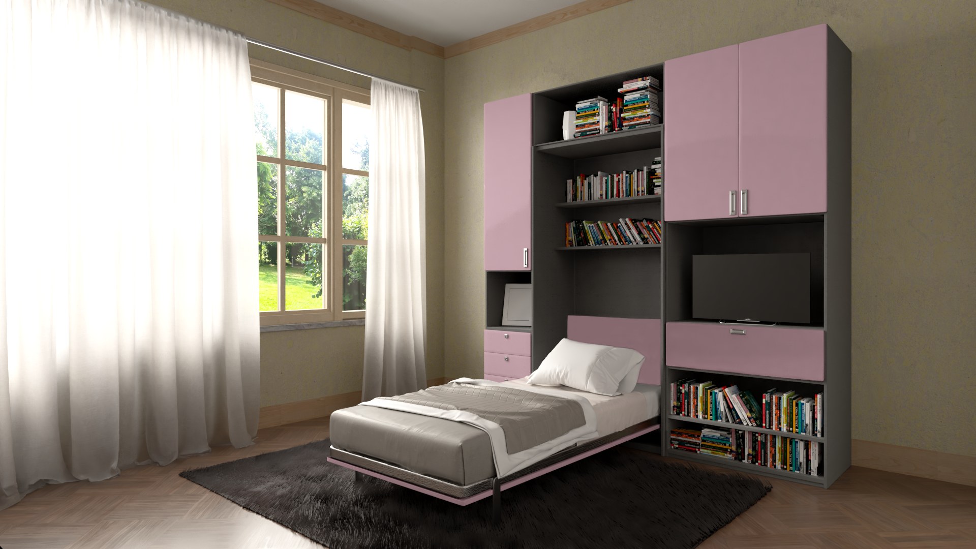 - Mobile letto a scomparsa salvaspazio 1 piazza e 1/2 con apertura verticale.