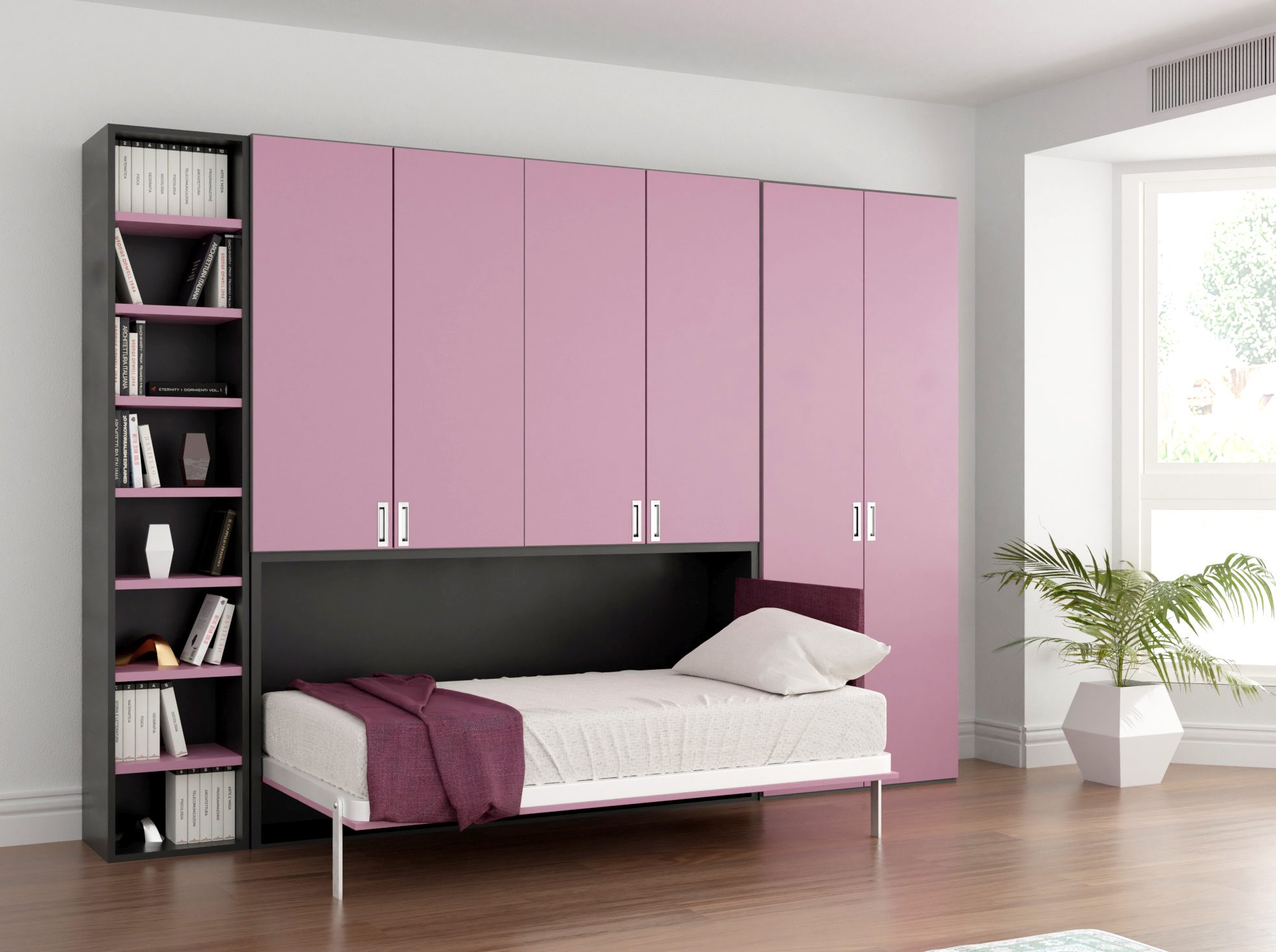 - Mobile letto a scomparsa salvaspazio 1 piazza con apertura orizzontale.