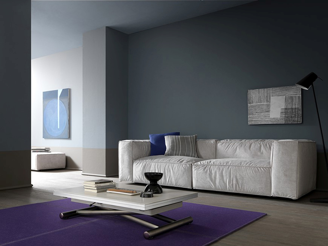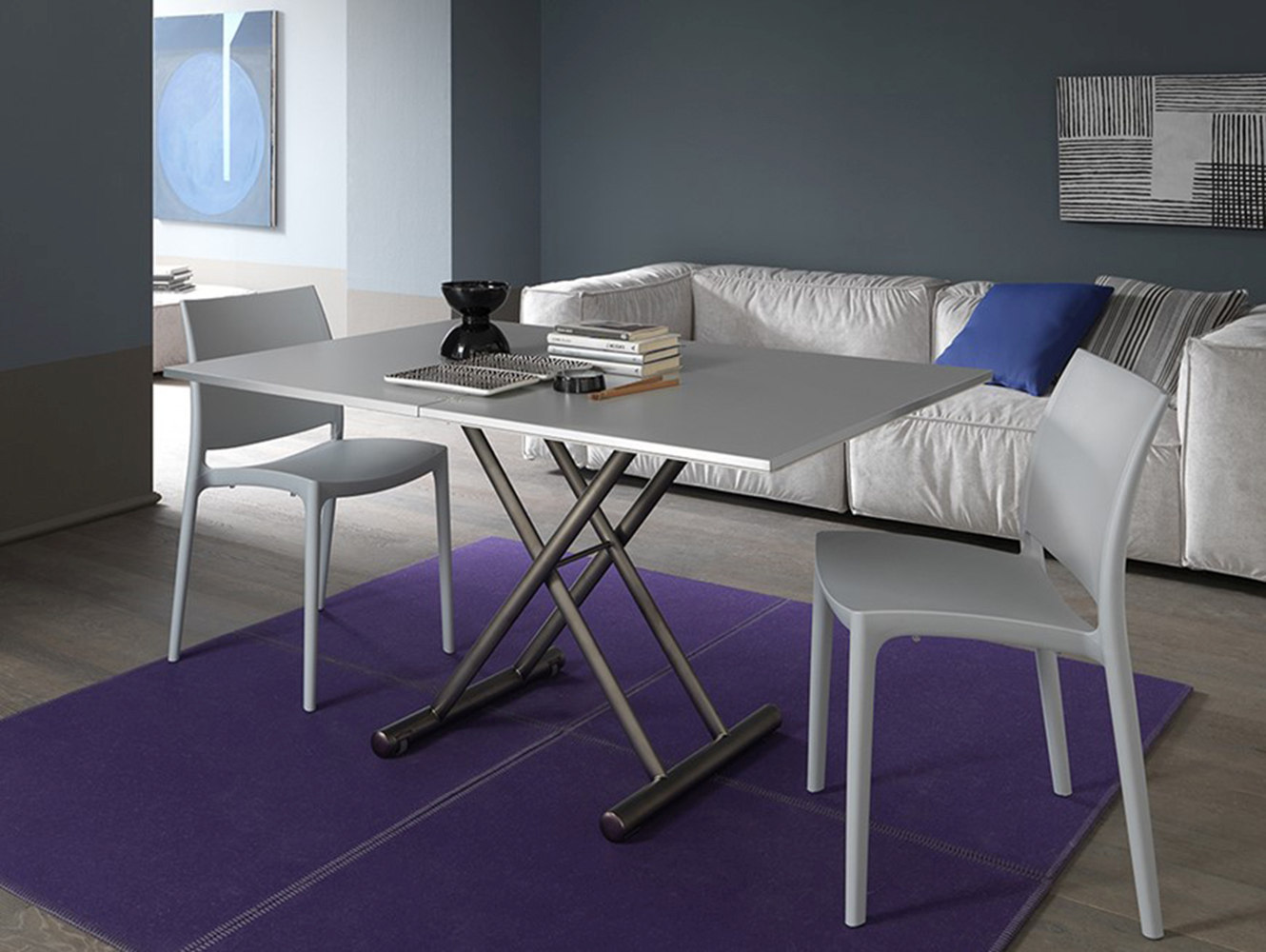 - Tavolino da salotto trasformabile in tavolo da pranzo.