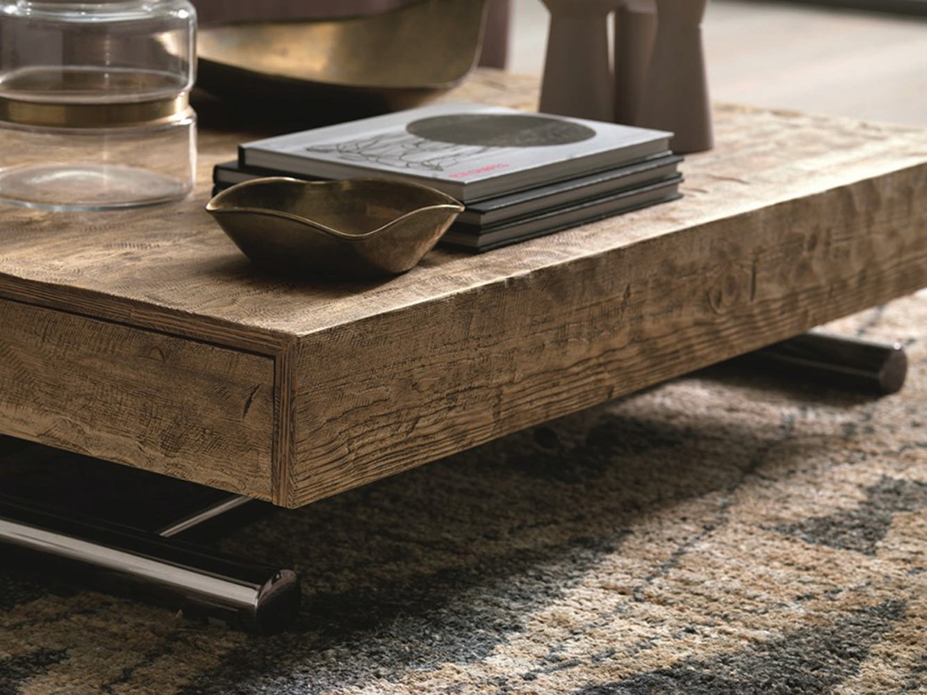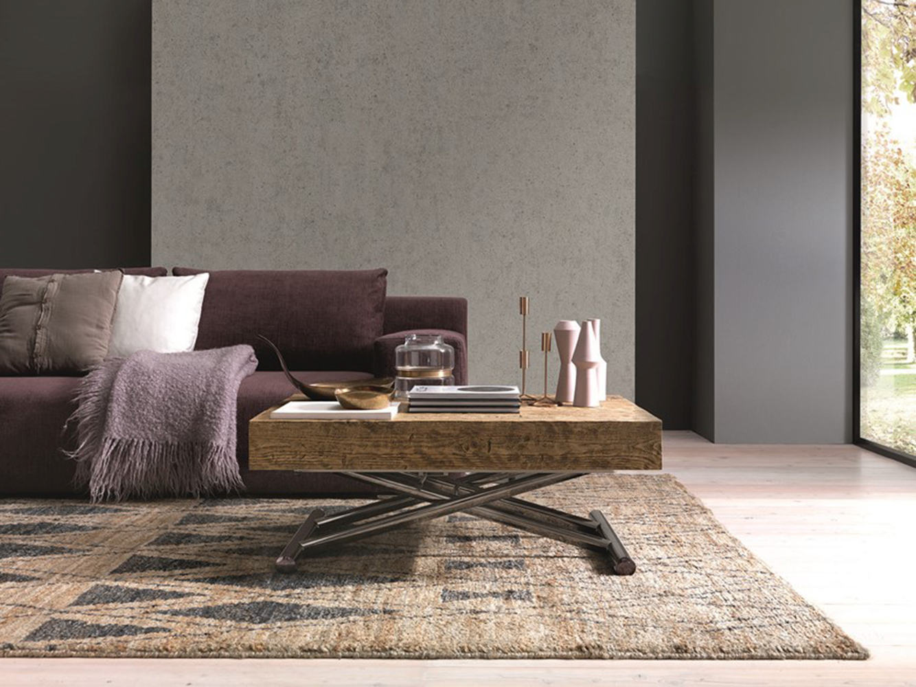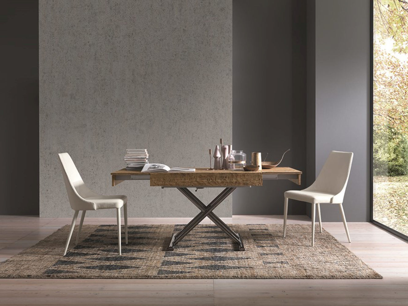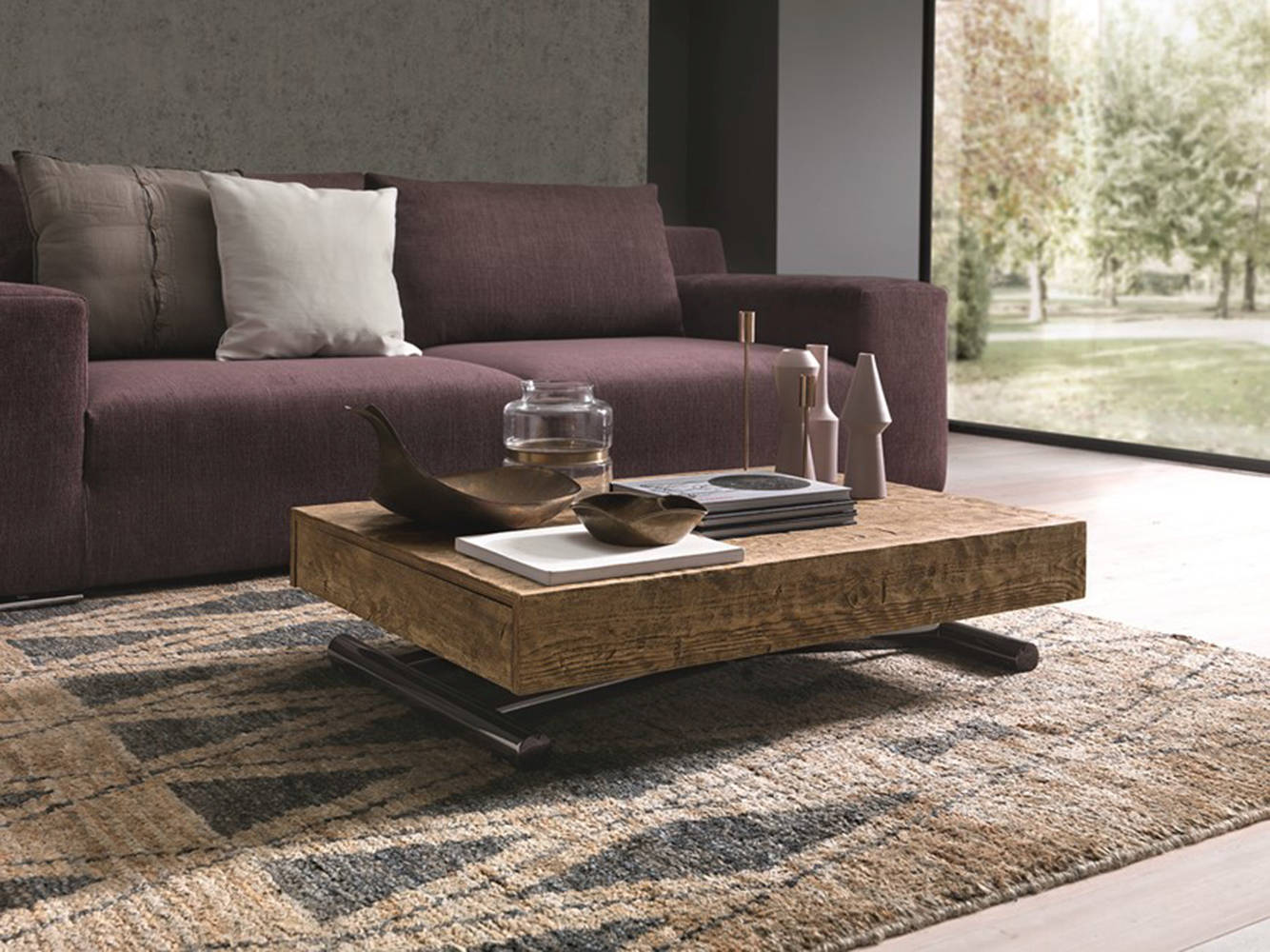 - Tavolino da salotto trasformabile in tavolo da pranzo.