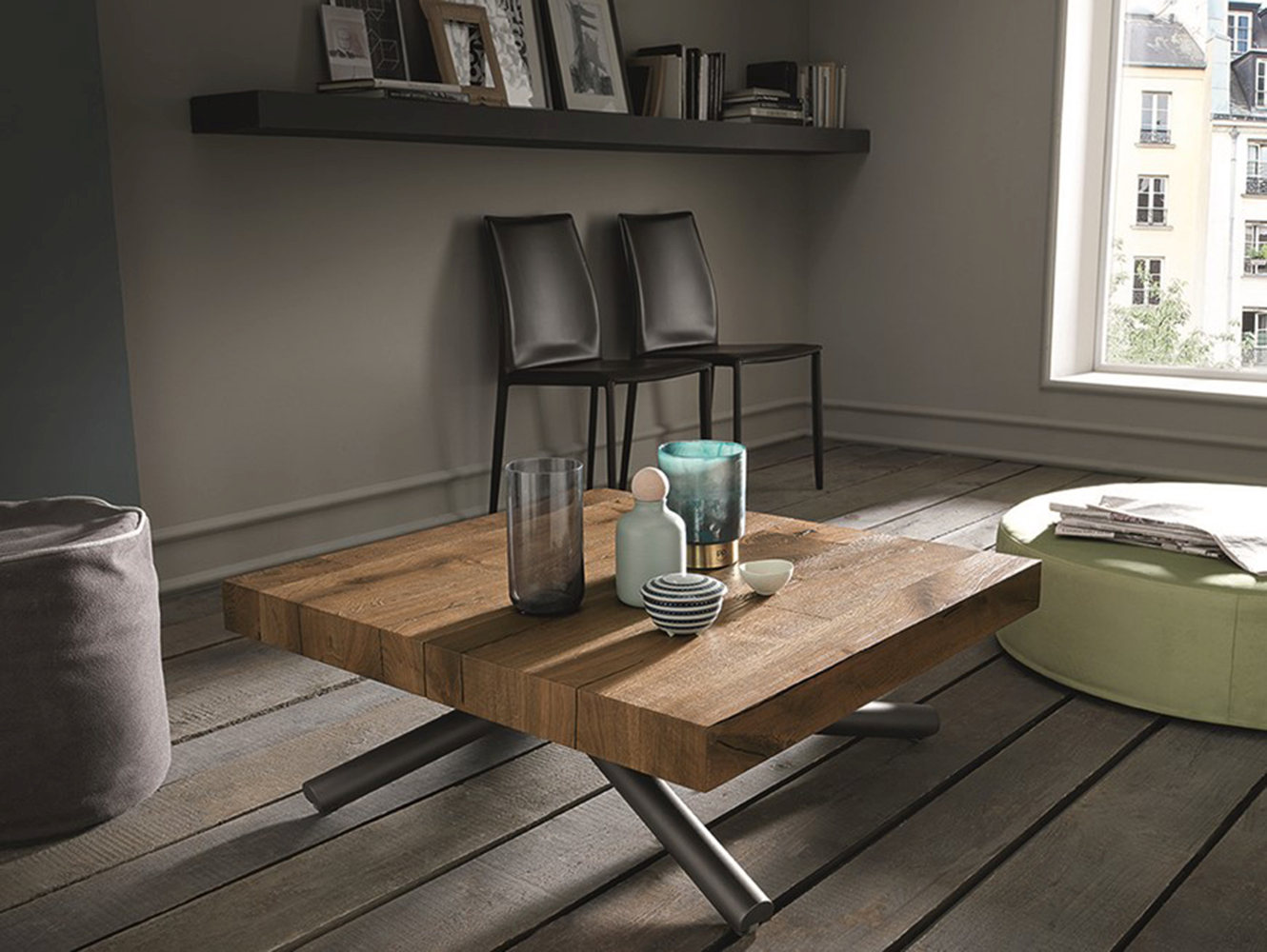 - Tavolino da salotto trasformabile in tavolo da pranzo.